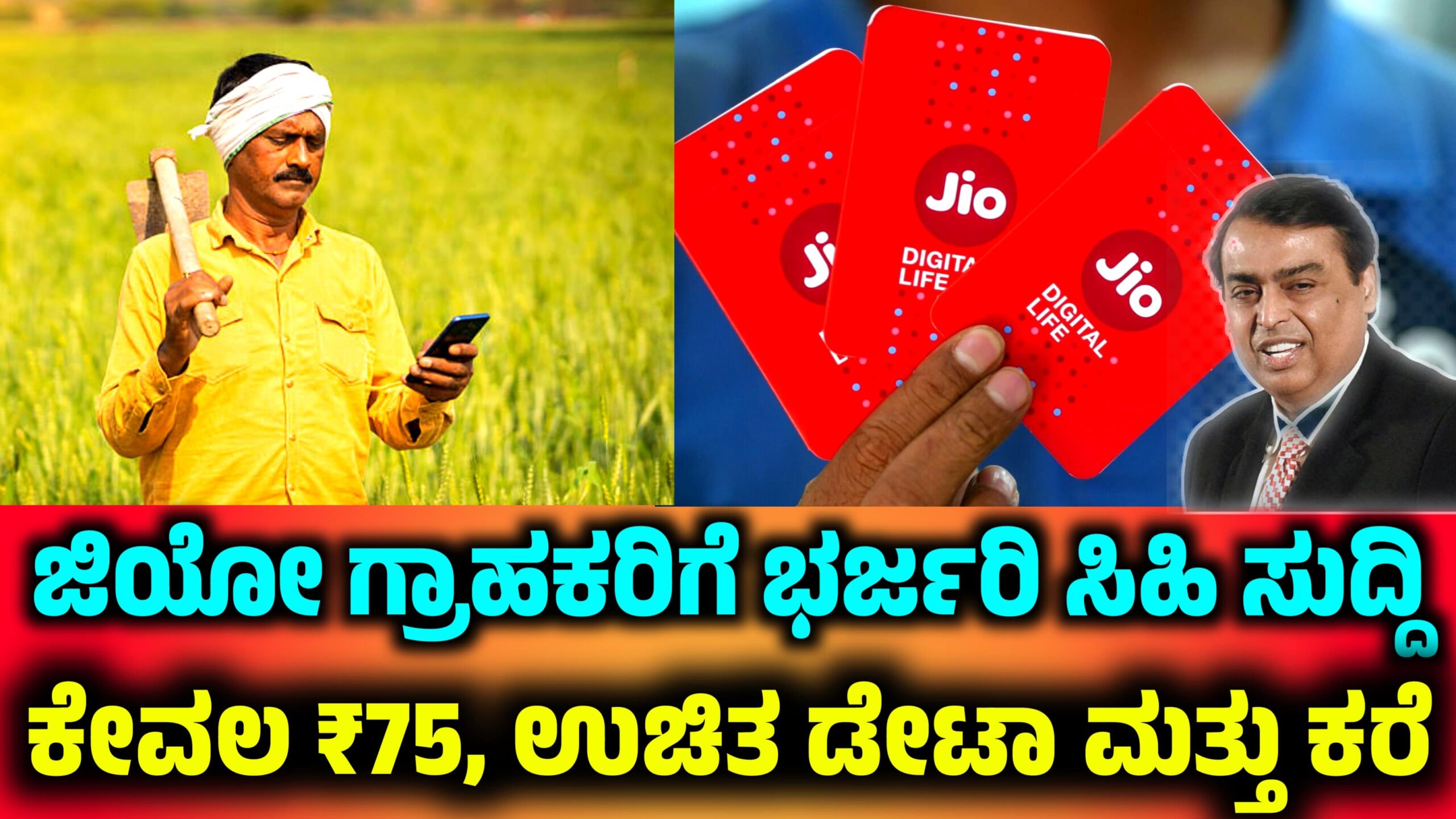 ನಮಸ್ಕಾರ ಸ್ನೇಹಿತರೆ ಕರ್ನಾಟಕದ ಸಮಸ್ತ ಜನರಿಗೆ ಈ ಮೂಲಕ ತಿಳಿಸುವುದೇನೆಂದರೆ ಇದೀಗ ಭಾರತೀಯ ರಿಲಯನ್ಸ್ ಕಂಪನಿ ಒಡೆತನದ ಜಿಯೋ ಟೆಲಿಕಾಂ ಸಂಸ್ಥೆ ತನ್ನ ಗ್ರಾಹಕರಿಗೆ ಅತ್ಯಂತ ಕಡಿಮೆ ಬೆಲೆಯ ರಿಚಾರ್ಜ್ ಪ್ಲಾನ್ ಪರಿಚಯ ಮಾಡಿದ್ದು ಇದು ಜಿಯೋ ಗ್ರಾಹಕರಿಗೆ ಸಿಹಿ ಸುದ್ದಿ ಎಂದು ಹೇಳಬಹುದು ಹೌದು ಸ್ನೇಹಿತರೆ ಕೇವಲ 75 ರಿಚಾರ್ಜ್ ಮಾಡಿಸಿದರೆ ನಿಮಗೆ ಉಚಿತ ಕರೆಗಳು ಮತ್ತು ಡೇಟಾ ಸಿಗುತ್ತದೆ ಇದರ ಬಗ್ಗೆ ಸಂಪೂರ್ಣ ಮಾಹಿತಿಯನ್ನು ತಿಳಿದುಕೊಳ್ಳೋಣ.