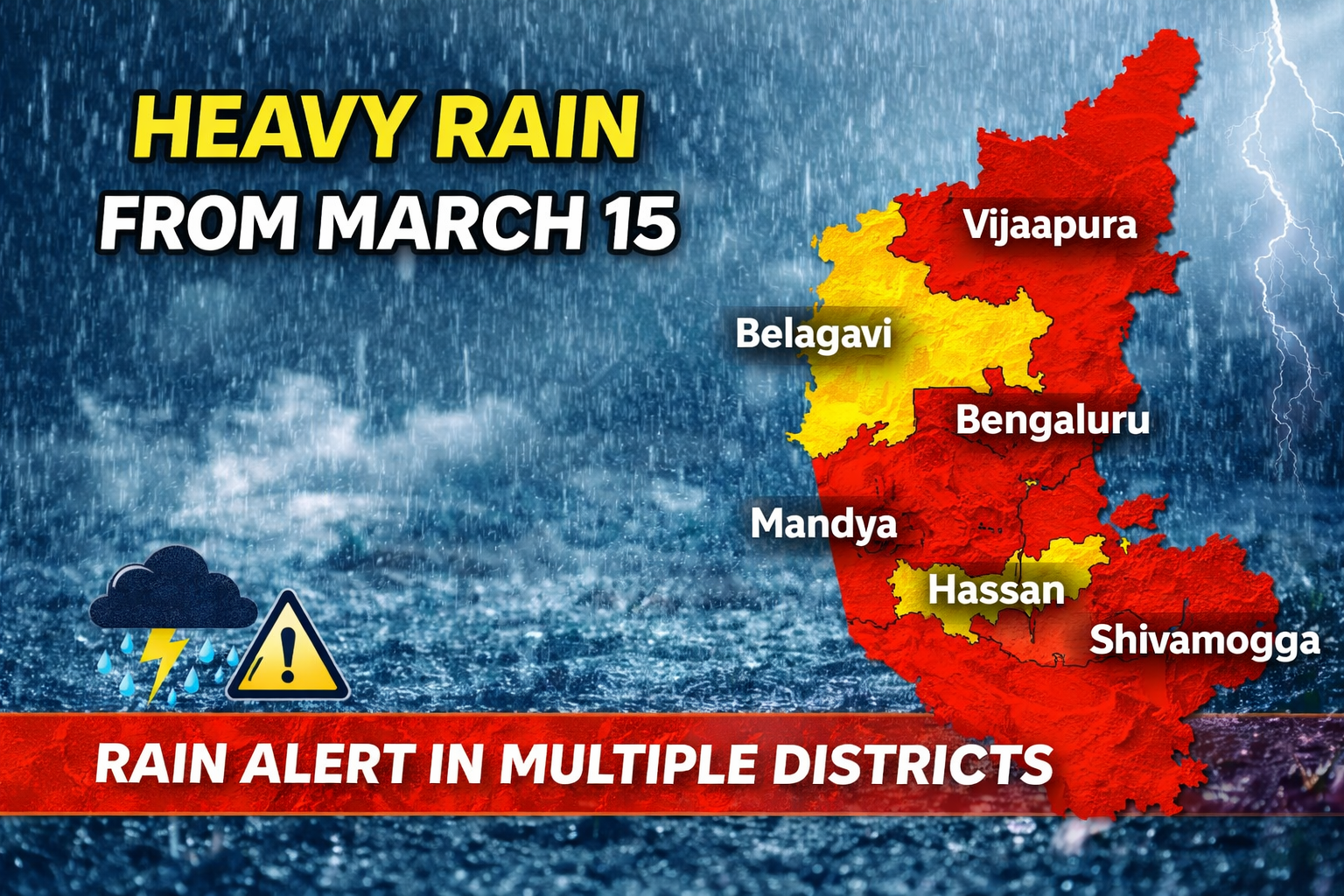 ಬಿಸಿಲ ಬೇಗೆಯಿಂದ ಜನ ಸಾಮಾನ್ಯರು ತತ್ತರಿಸುವ ಮಧ್ಯೆಯೇ ಮಾರ್ಚ್ 15 ರಿಂದ 17 ರವರೆಗೆ ಮೂರು ದಿನಗಳ ಕಾಲ ರಾಜ್ಯದ ವಿವಿಧೆಡೆ ಮಳೆಯಾಗುವ ನಿರೀಕ್ಷಿಯಿದೆ ಎಂದು ಹವಾಮಾನ ಇಲಾಖೆ ಮುನ್ಸೂಚನೆ ನೀಡಿದೆ.