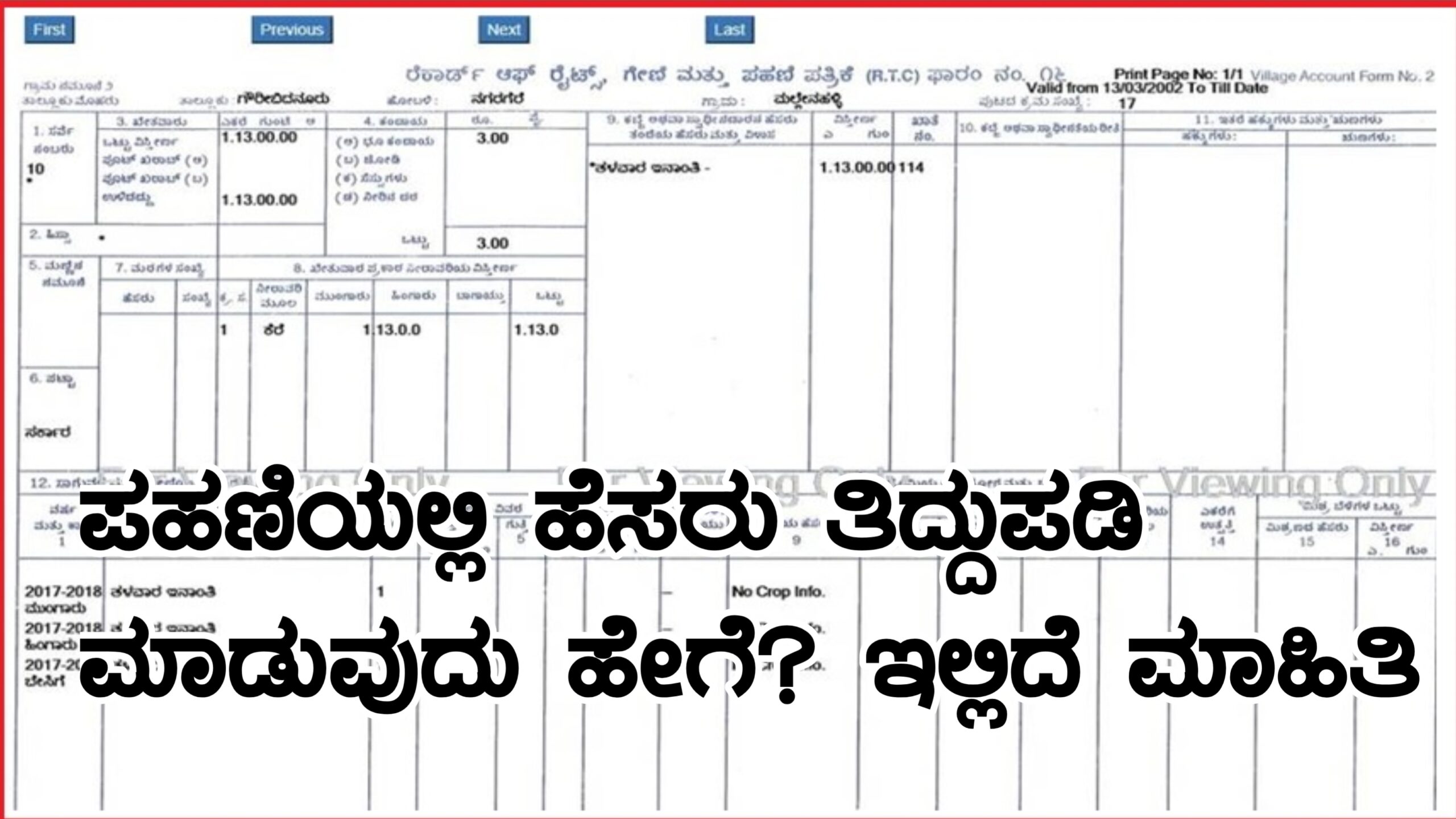 Thank you for reading this post, don't forget to subscribe!ರೈತರು ತಮ್ಮ ಪಹಣಿಗಳಲ್ಲಿ ಹೆಸರು ತಂದೆಯ ಹೆಸರನ್ನು ಸರಿಯಾಗಿ ಗಮನಿಸಿರುವುದಿಲ್ಲ. ಸ್ಪೆಲಿಂಗ್ ಮಿಸ್ಟೇಕ್ ಇದ್ದರೂ ನೀವು ಸರ್ಕಾರದ ಸೌಲಭ್ಯಗಳಿಂದ ವಂಚಿತರಾಗುತ್ತೀರಿ. ಹಾಗಾಗಿ ನಿಮ್ಮ ಪಹಣಿಯನ್ನು ಒಮ್ಮೆ ಪರಿಶೀಲಿಸಿಕೊಳ್ಳಿ. ಅದು ಹೇಗೆ ಅಂದುಕೊಂಡಿದ್ದೀರಾ ಇಲ್ಲಿದೆ ಸಂಪೂರ್ಣ ಮಾಹಿತಿ.